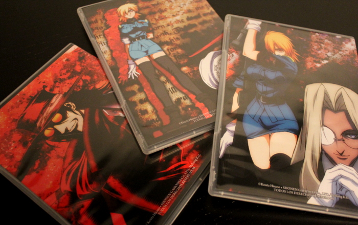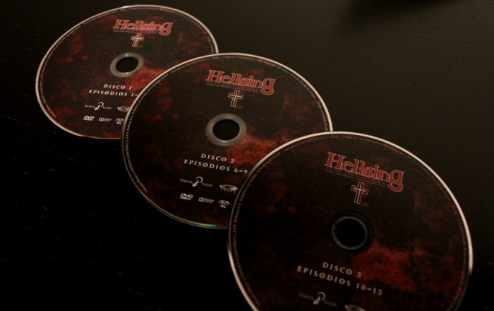 Hellsing cuenta con un total de 13 episodios recogidos en tres discos DVD. La serigrafía de los mismos se amolda a la gama de colores empleada en la cubierta de la edición, además de plasmar una imagen de apariencia gótica en tintes rojos, malvas y negros que logra a la perfección embaucarte en el espíritu sombrío de la serie. Estos tres discos DVD contienen además una serie de material adicional compuesto por el tráiler original de Hellsing, un vídeo de presentación y entrevistas al equipo de producción (de las cuales hablaremos posteriormente). A nivel técnico, estamos ante una edición cuyos 13 capítulos mantienen una resolución 720p y un formato 16:9, contando con subtítulos y doblaje en español, además del original japonés. Algo que se ha conseguido gracias a la remasterización de la edición antigua y que ha logrado que la calidad de la serie, actualmente, sea excepcional.