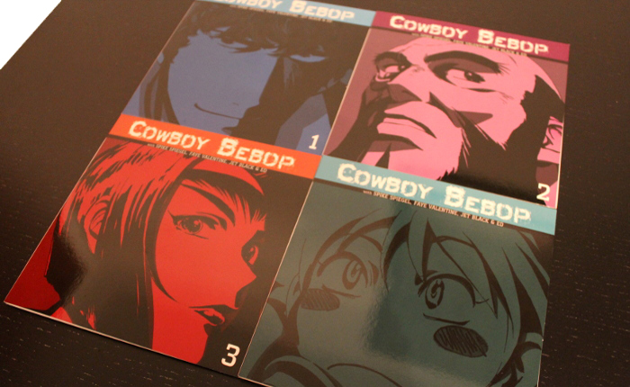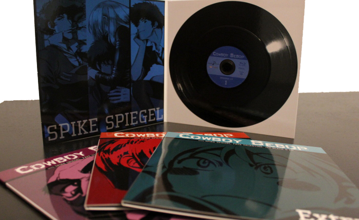 Cowboy Bebop cuenta con un total de 26 episodios que se recogen en tres discos Blu-Ray. Tres discos que además de contener una serie extraordinaria poseen un diseño único. A simple vista parece que se trate de auténticos discos de vinilo, pero realmente el diseño juega con nuestra vista y dentro de esa imagen encontramos el disco. Y esto no es todo, pues al representar un disco de vinilo también cuenta con un envoltorio para cada disco y una portada que representa a cada uno de los protagonistas. Un lujo la verdad.