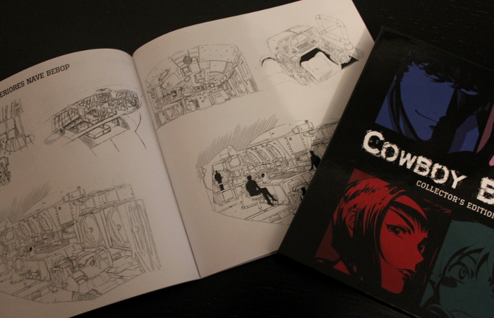 No estamos de broma no. La edición coleccionista de Cowboy Bebop nos ofrece la oportunidad de subirnos a bordo del Bebop y de todo el universo creado por Watanabe a través de un libro de ilustraciones de 52 páginas. Los amantes del dibujo todavía lo apreciarán más, pero la verdad es que es un libro exclusivo que plasma toda la serie y no deja ningún detalle en el aire. Podemos apreciar dibujos de todos los personajes principales, la nave del Bebop al completo con todo tipo de planos y detalles e incluso sus interiores, la cabina de mando de las naves que salen en la serie… alucinante. Pero no todo queda aquí, pues también tenemos una recopilación de varias páginas donde nos explican todo sobre el mundo de Bebop y por último unas ilustraciones de todos los escenarios de la serie. Sin duda, un libro que complementa a la perfección esta edición coleccionista de Cowboy Bebop.