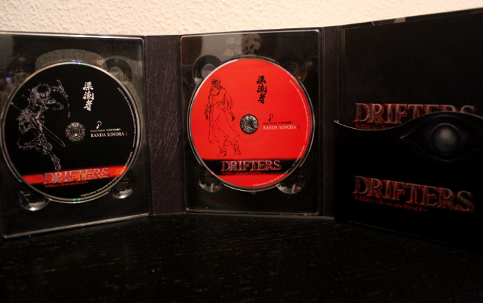 Como hemos mencionado anteriormente, uno de los extras que supone un gran aliciente para adquirir esta edición es la banda sonora original de la serie. Una compilación de algo más de 2 horas de duración compuesta por Yasushi Ishii y Hayato Matsuo, compositores con experiencia previa en series como Hellsing y JoJo’s Bizarre Adventure. Esta soundtrack está formada por una gran variedad de temas musicales, pudiendo encontrar pistas meramente instrumentales, vocales o con un estilo mucho más techno. Además de la BSO, la edición coleccionista de Drifters incluye diversos tráilers promocionales, como el de la serie, el de su estreno en Japón o el del lanzamiento de la edición en DVD.