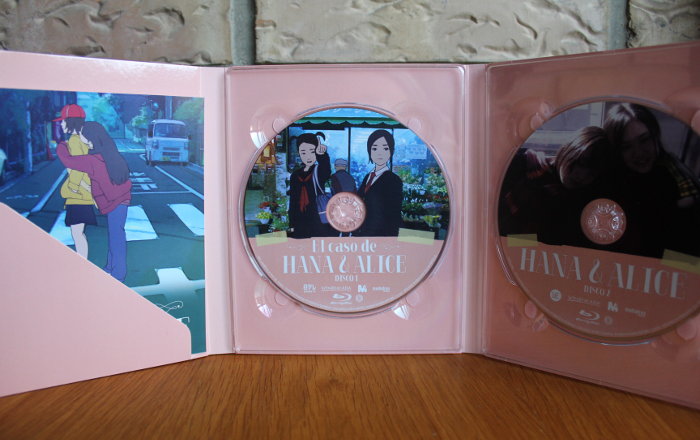 Antes hablábamos de un segundo disco de contenidos extra. En éste podemos encontrar la película original de 2004 de El caso de Hana y Alice. Una película que como hemos comentado anteriormente fue rodada con actores reales y que también recibió premios. Una obra con una gran consideración tanto por la crítica como por el público. Es un lujo poder disfrutar de ella otra vez y además cuenta con una excelente calidad gráfica y un sonido perfecto. Si no la has visto, es inevitable no hacerlo. Una pequeña recomendación: si quieres, deberías ver antes la película original y tras ésta, la película de animación. Un método que te hará apreciar ambas obras y te hará ver la evolución conseguida por Iwai con el paso de los años bajo una misma historia.