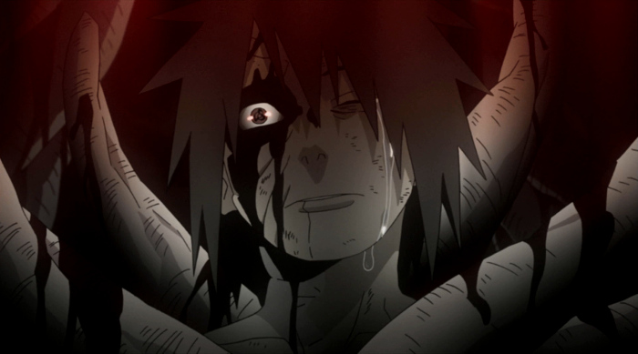 Obito protagoniza la que, para servidor, es la escena más gore y cruda de la serie, una escena repleta de rabia, desolación y sentimiento de pérdida. Tras presenciar cómo su mejor amigo Kakashi atravesaba el corazón de Rin, la chica que tanto amaba, Obito entra en cólera y, literalmente, destroza a todos los enemigos que tendieron una emboscada a sus excompañeros. La imagen de Obito sosteniendo el cuerpo inerte de Rin en un mar de sangre teñido por el manto de una potente luna roja aún perdura en los recuerdos de muchos de nosotros. Esa fue la noche en la que el corazón más puro se tiñó de las falsas promesas e ilusiones de un nuevo mundo.