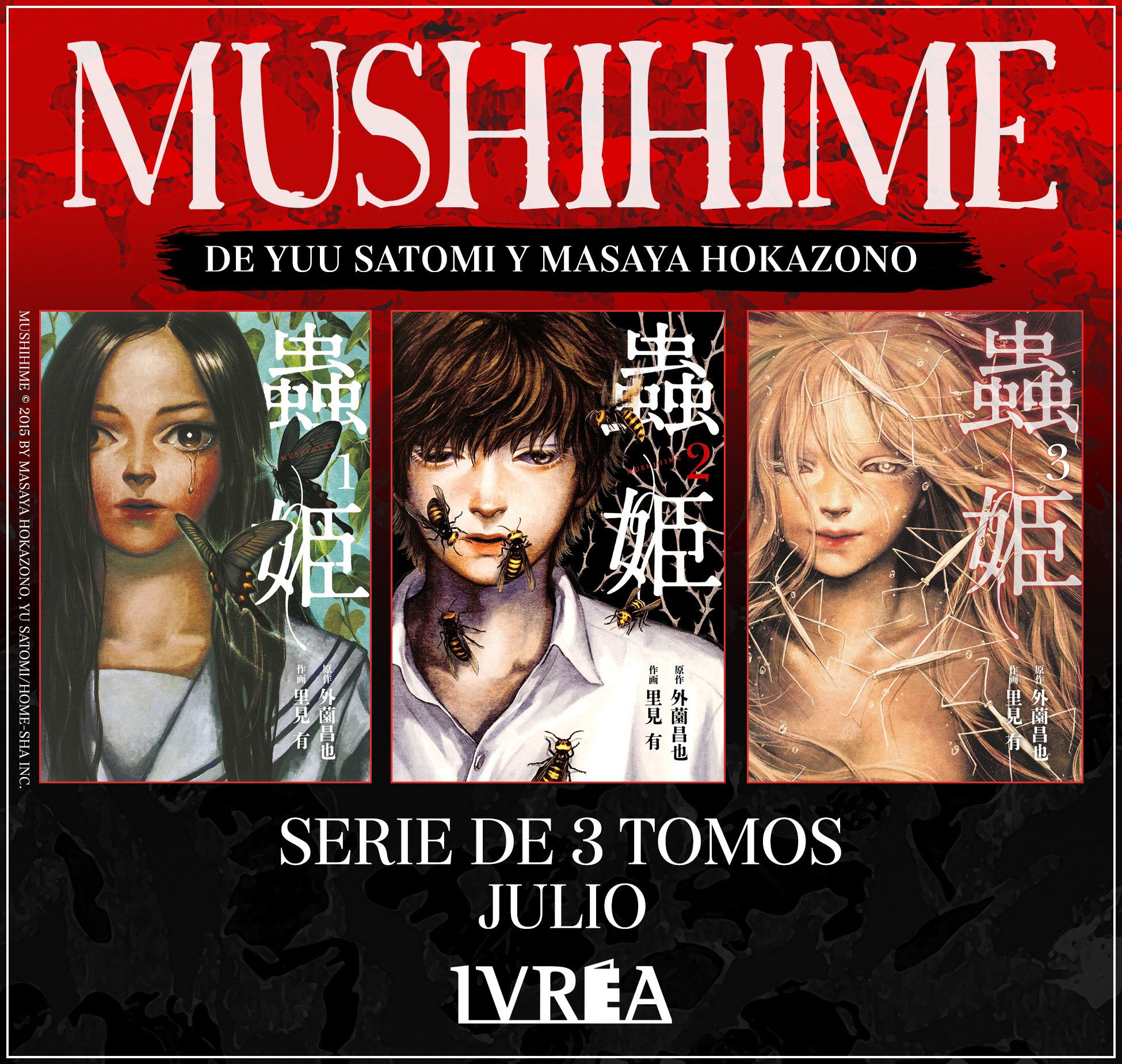 Aunando horror y thriller, Mushihime se beneficia de la belleza en lo grotesco que imprime Yuu Satomi en su estilo de dibujo. Cerrada en un total de tres volúmenes, Ivrea publicará esta obra en formato B6 a partir de julio con una periodicidad bimestral y un precio de 8,50 €.