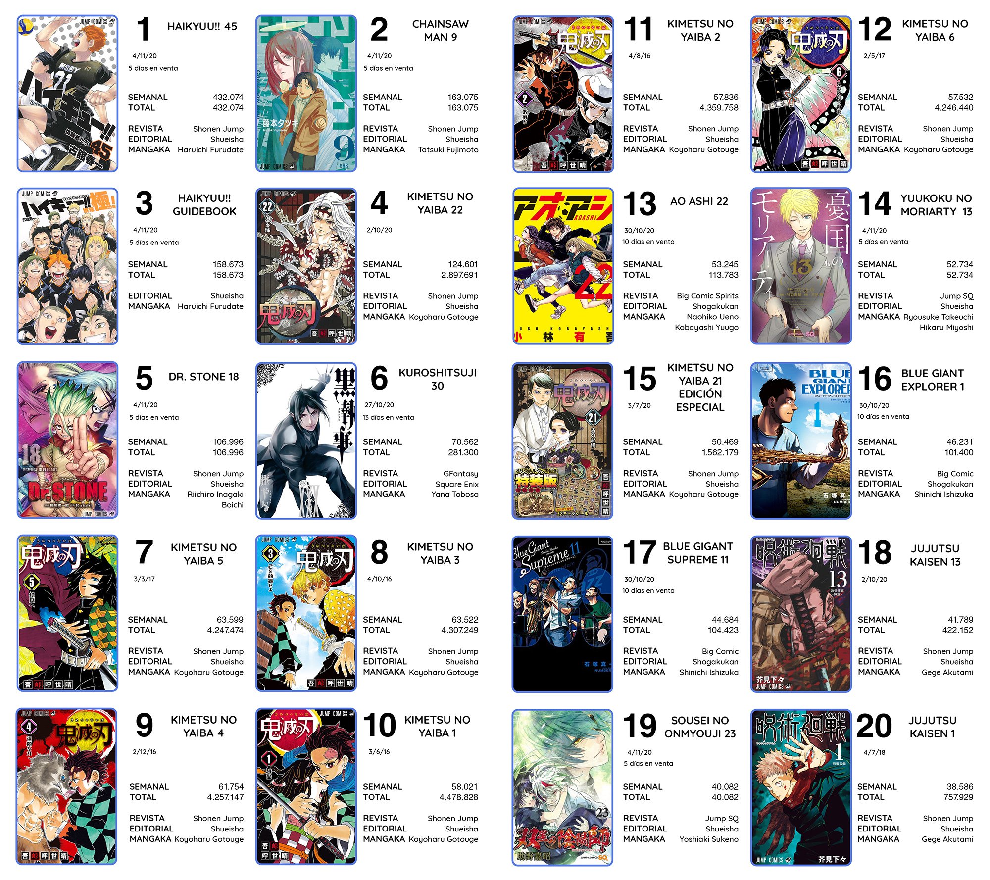TOP MANGA ORICON: NOVIEMBRE 2020